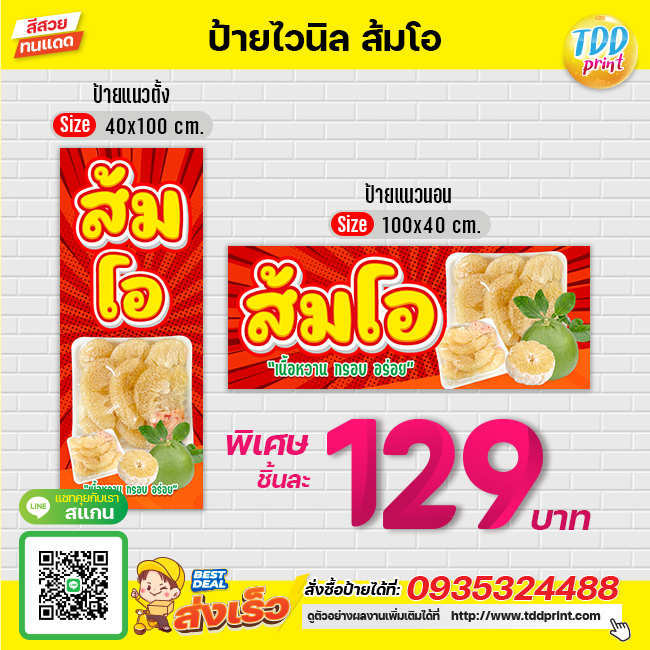 ป้ายไวนิลผลไม้ส้มโอV4 ป้ายทนแดด กันน้ำ ภาพคมชัด สีสวยสดใส พร้อมใช้งาน